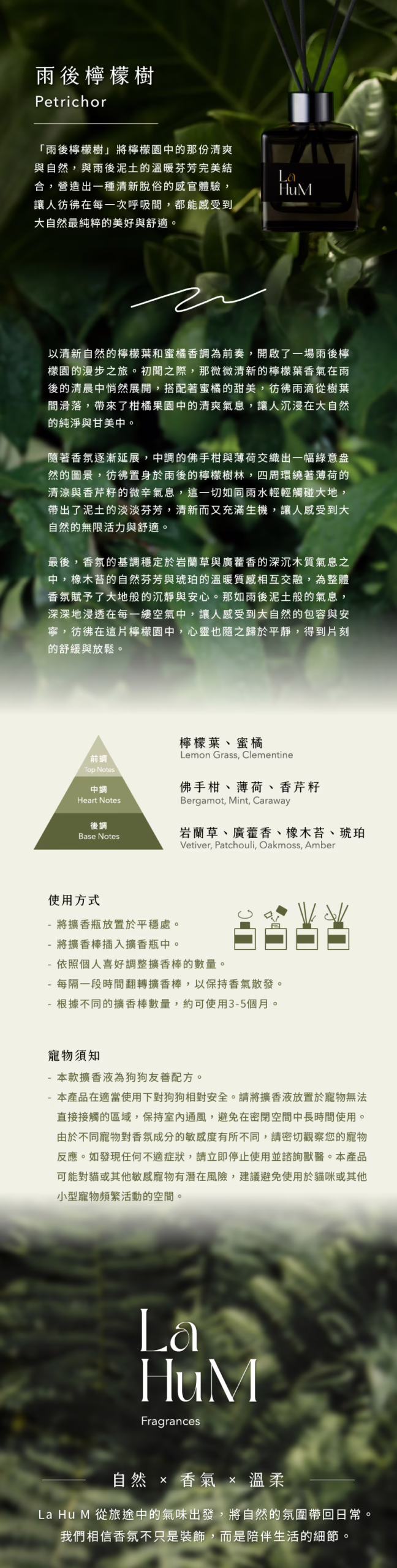 "PETRICHOR" perfectly blends the refreshing and natural essence of a lemon grove with the warm, earthy fragrance of rain-soaked soil, creating a fresh and pure sensory experience. With every breath, you feel the purest beauty and comfort that nature has to offer.